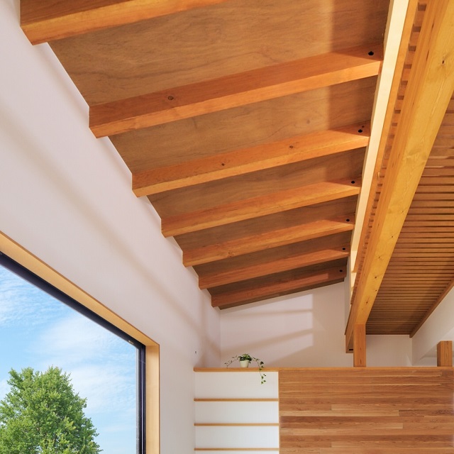 無垢の床 構造材表わし天井 ベニヤ造作の壁