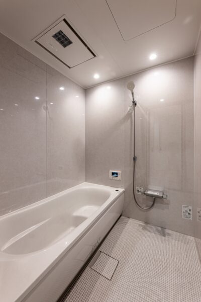 FRP浴槽を人大浴槽にすればよかったかも!?引き渡し直後におもちゃか何かで表面を傷付けてしまい、掃除するたびに溜息が出ます。オプションのおそうじ浴槽(浴槽の自動洗浄機能)をつけるか迷いましたが、浴室全体的に掃除しやすく、なくてよかったと思います。