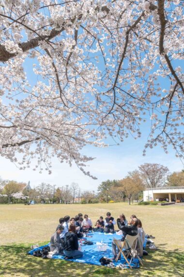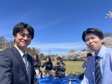 スーツ姿で参加してくれた新入社員の二人、先輩たちとの距離もあっというまに縮まっていました。入社後でまだ慣れないことも多い中、お花見という場がいいきっかけになってくれたら嬉しい限りです。