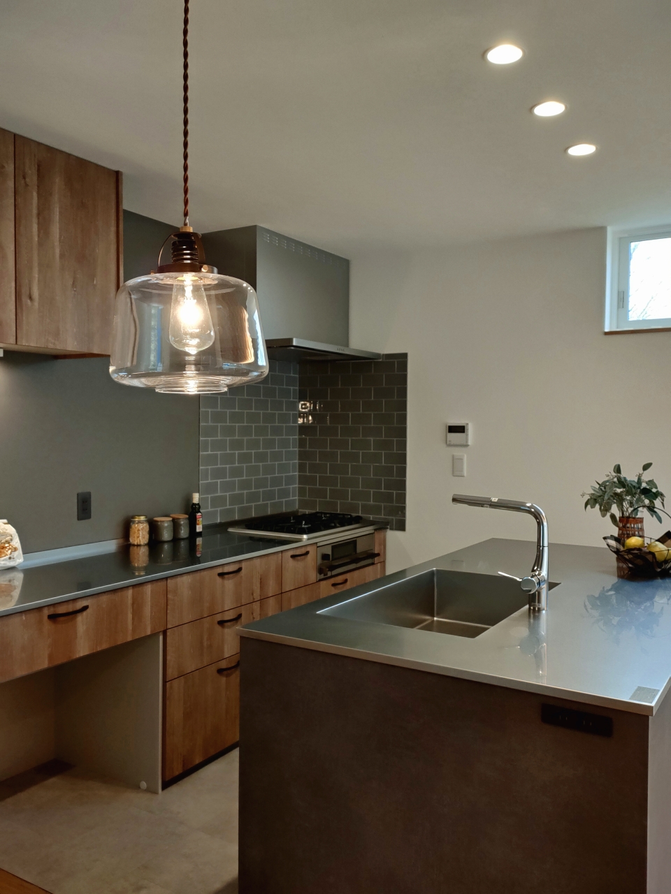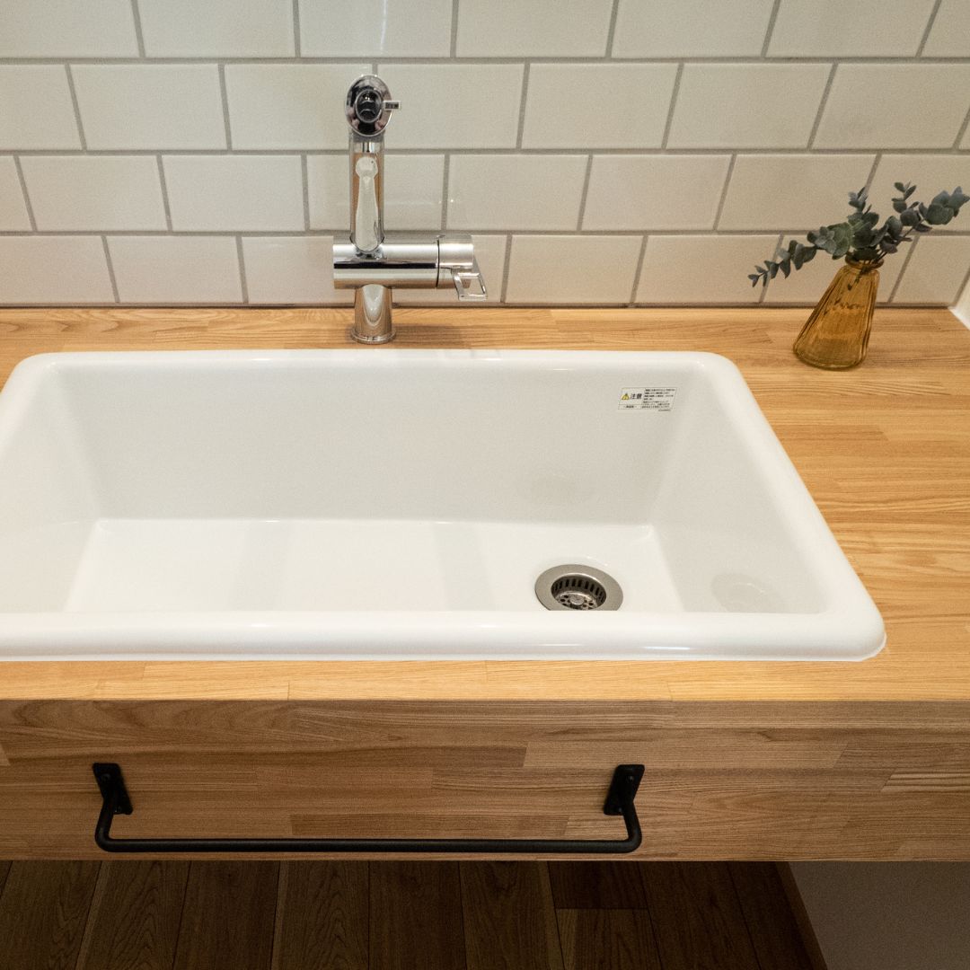 オークのコンロとグレーのシンクから生まれます。
