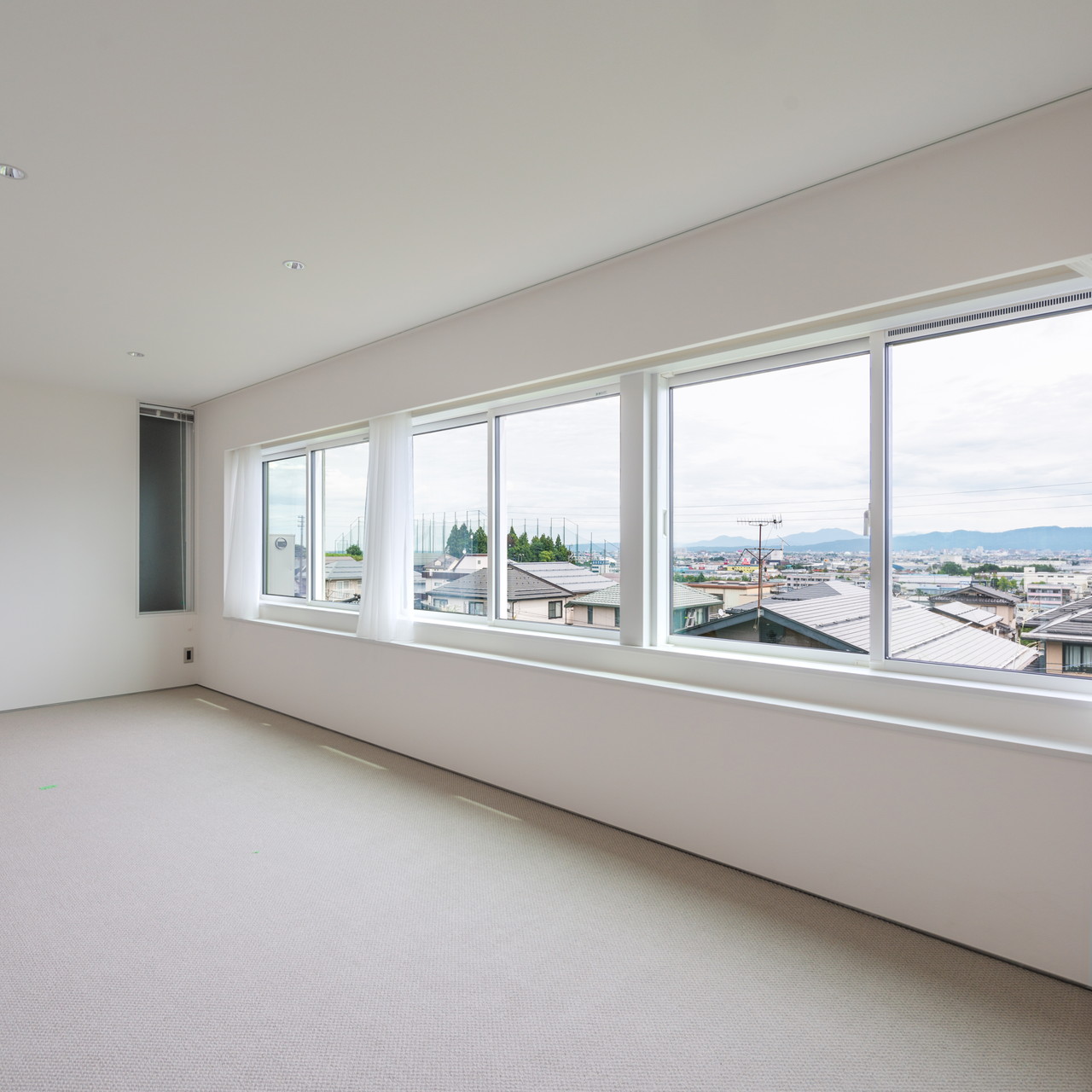 水平に連なる窓は、現実と曖昧に繋がる境界となる。