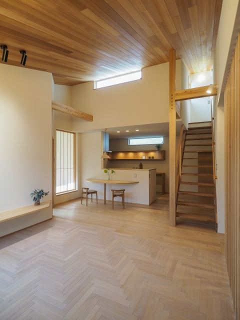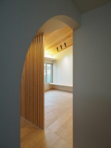 丁寧に描いた半円はメイン空間の中央で暮らしを支えている