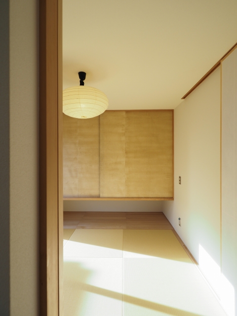 空間同士を繋ぐ、伝統的な黄金比で構成された障子