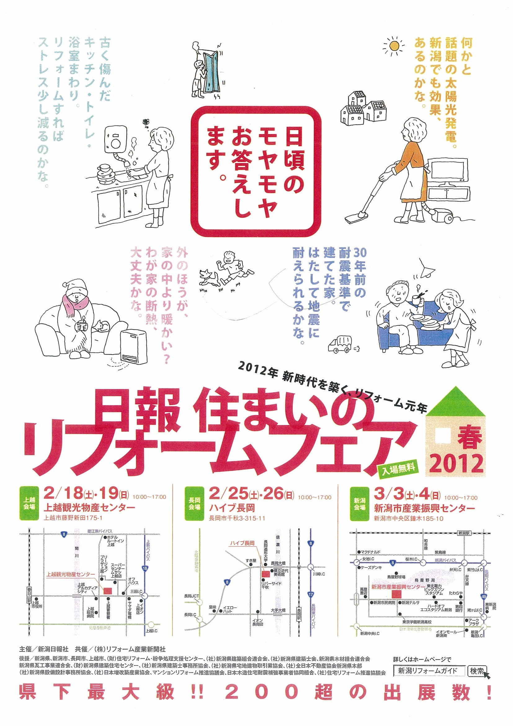 日報住まいのリフォームフェア2012春<長岡会場>に出展します。 2/25(土)・26(日) 長岡会場:ハイブ長岡 家に合わせて暮らすのではなく、 自分らしく暮らすために 家を再構築(リフォーム)してみませんか?