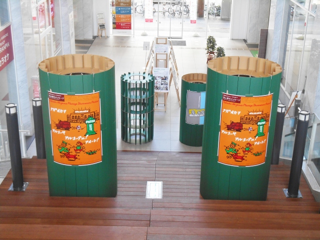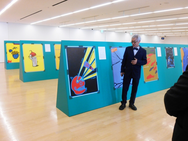 各会場には、秋山先生の代表作のメッセージポスターだけでなく、会場となる施設の過去の写真パネルも設置され、