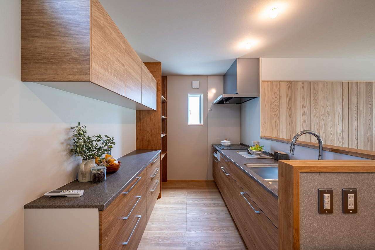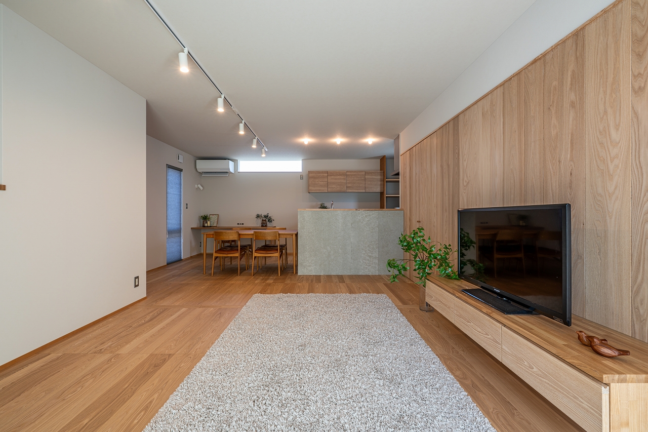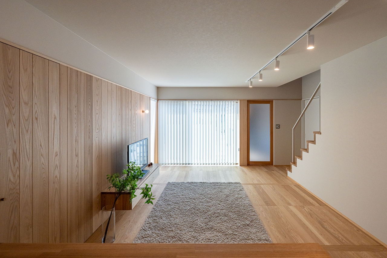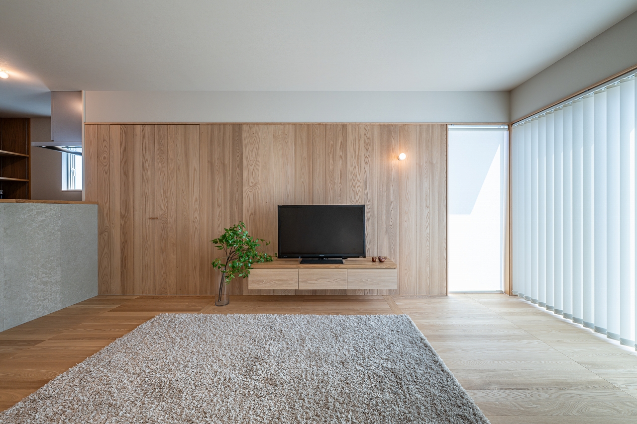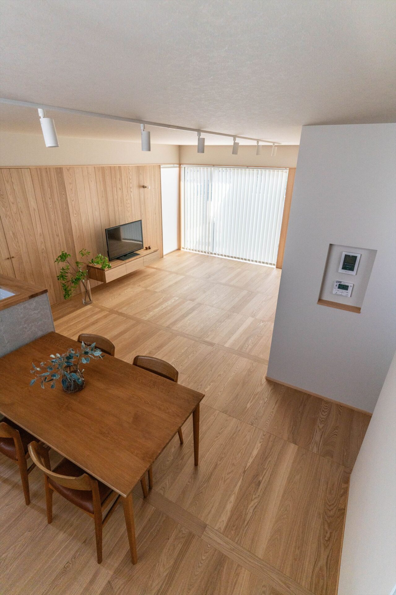 ウッドウォールパネルをリビングから繋がるように張りのばした