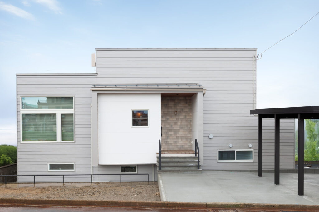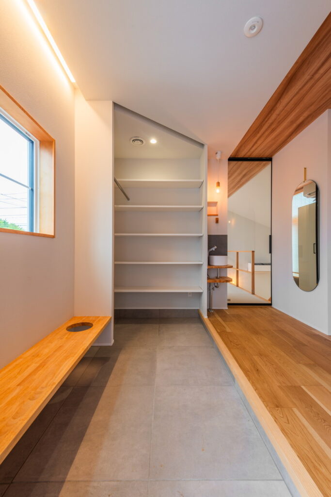 玄関は中2階。