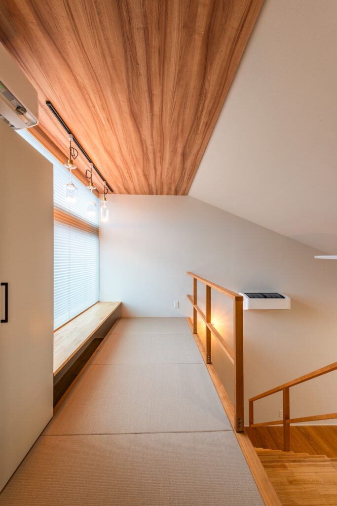 中二階から1Fリビングへ降りていく踊り場兼たまれるスペース