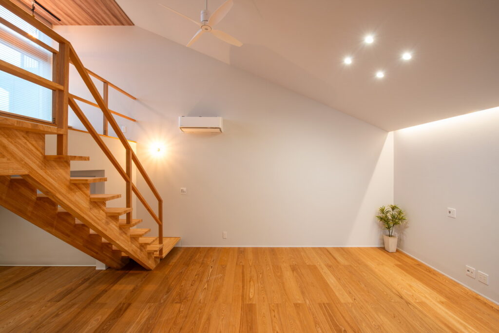 家の中に入ると1階にあるリビングに向かって階段を下りていく。