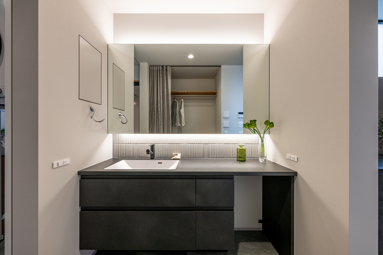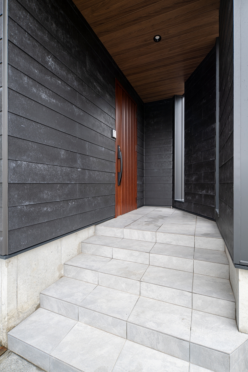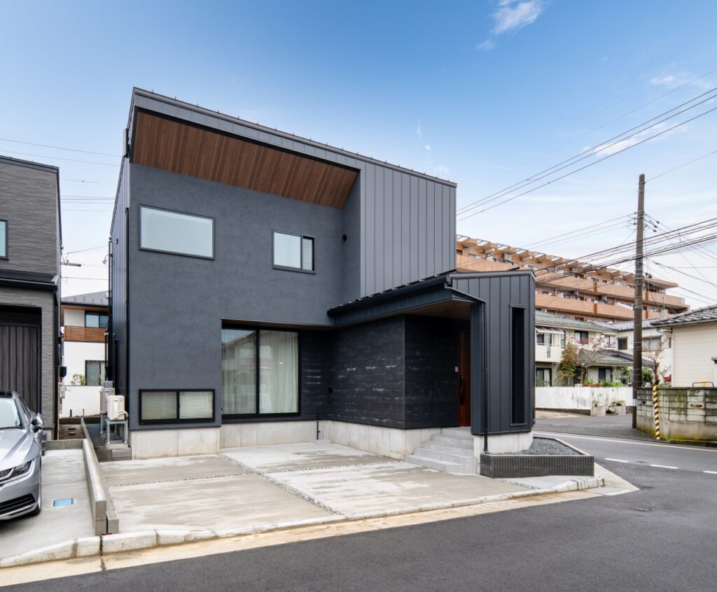 ガルバリウム・塗り壁・SOLIDOを組み合わせた、ブラック基調の外観