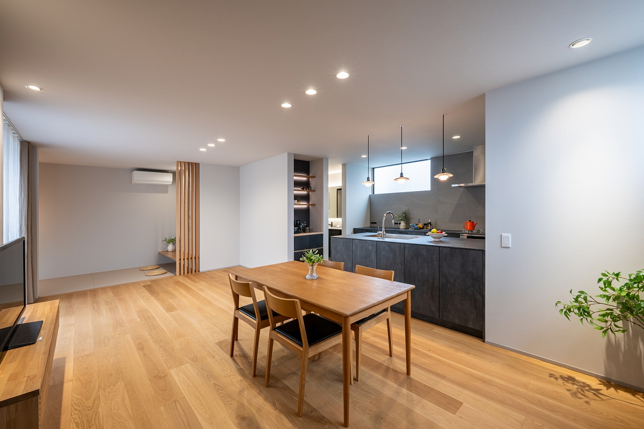 地窓からの優しい採光計画 「MAYUHANA」の照明が主役