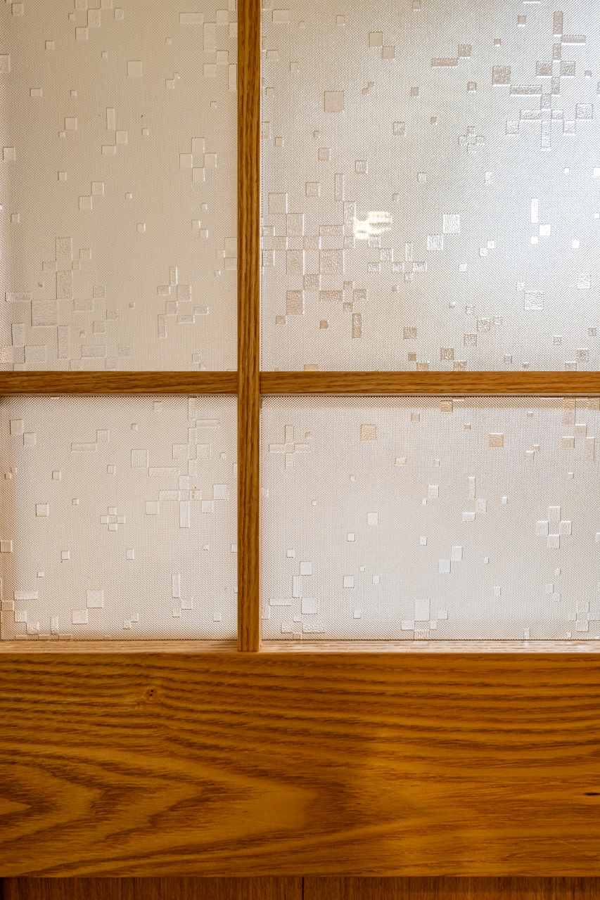 建て替え前の母屋のカタガラスをリメイクした造作建具。