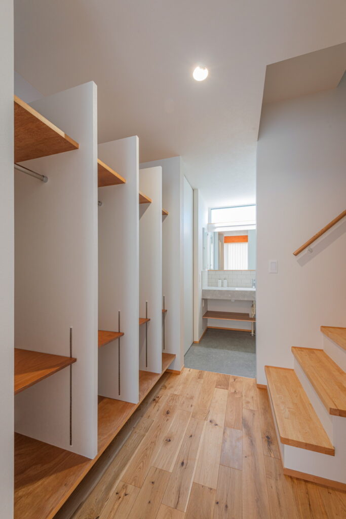 玄関、リビング、洗面にアクセスできる家族ロッカー