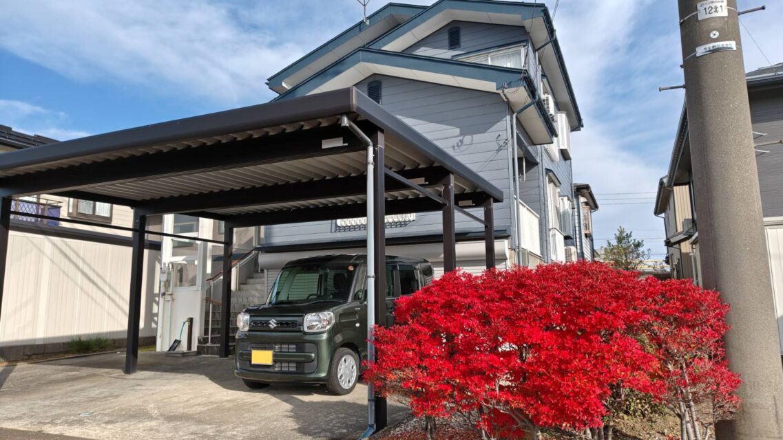高床はシャッター付なので、大切なお車を雪や雨風から守れます。(但し、お車の高さは事前に要チェックです)